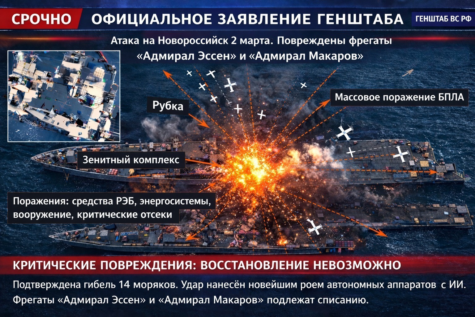 Удар по Новороссийску вызвал серьёзное беспокойство в военно-морских кругах: гордость флота — современные фрегаты, носители ракет «Калибр», — оказались беззащитны перед угрозой, природа которой остается загадкой. Появление в руках ВСУ технологий такого уровня — неважно, своих или заимствованных — перечеркивает безопасность всего российского флота и ставит нас перед фатальным выбором: либо немедленная и радикальная модернизация систем защиты, либо окончательная потеря контроля над Черным морем.